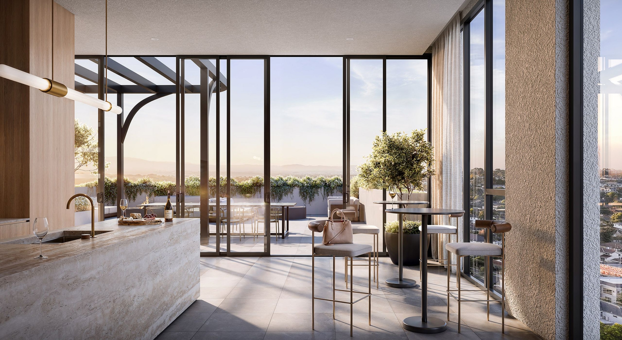 Beyond the inspiring design, the architecture delivers several practical advantages for residents. Balconies have been strategically placed to maximise views and privacy; every residence has been designed to draw sunlight deep within living spaces; and the rooftop level has been used to create an indoor-outdoor luxury communal lounge.
